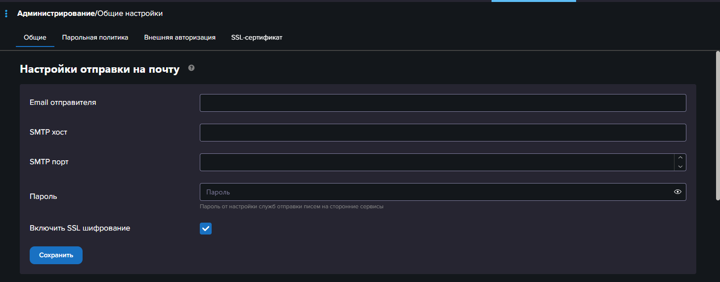 Настройки отправки на почту