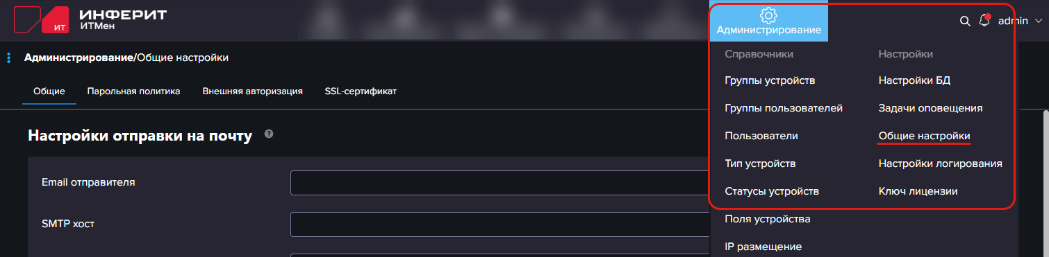 - Настройки отправки на почту - отправитель писем из системы ИТМен.