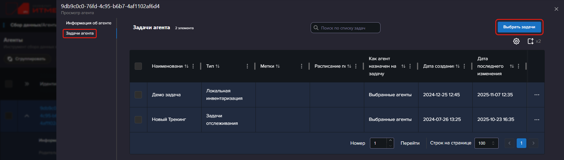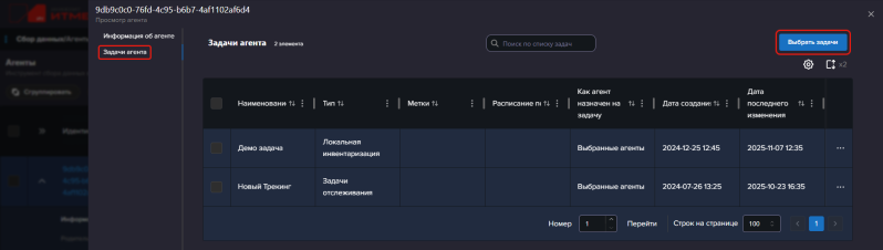 Просмотр задач агента
