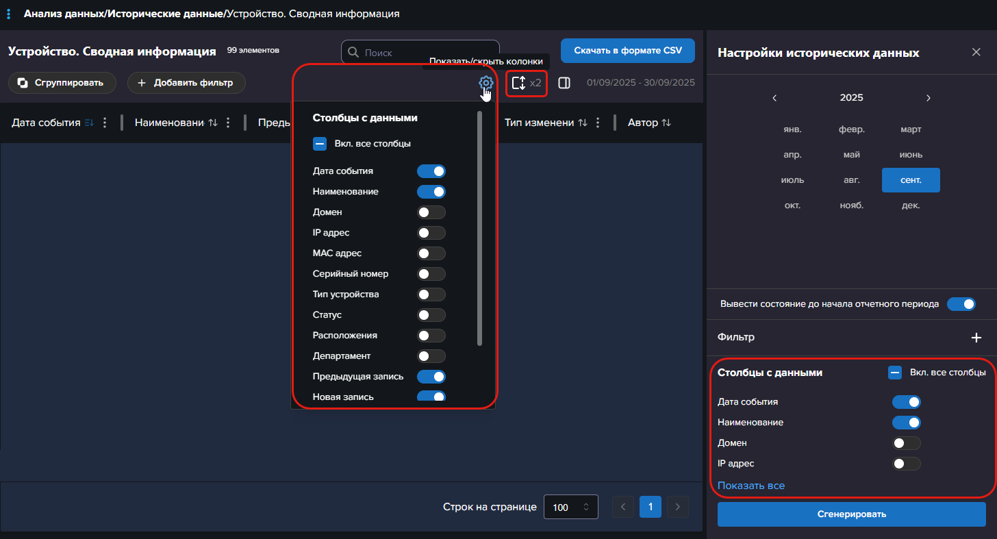 Чтобы отчет отобразился, задайте настройки и нажмите кнопку Сгенерировать, как описано выше.