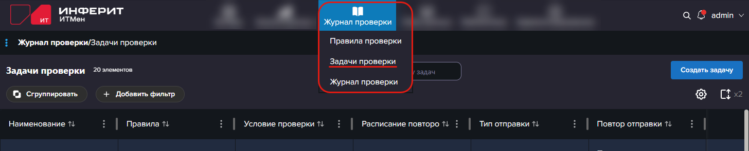 - Перейдите в раздел Журнал проверки / Задачи проверки с помощью верхнего меню.