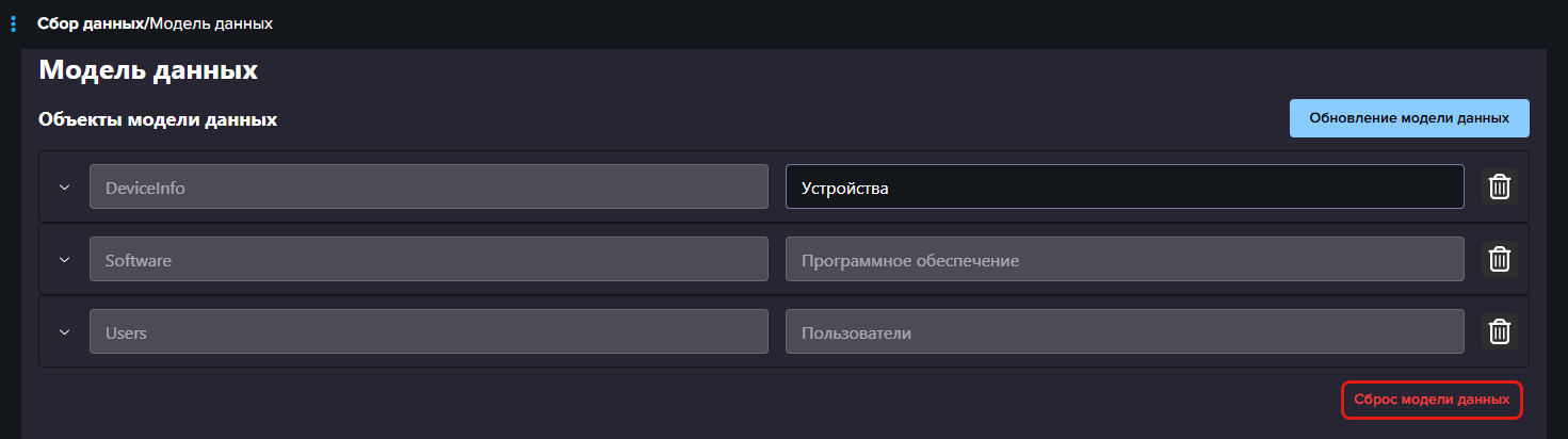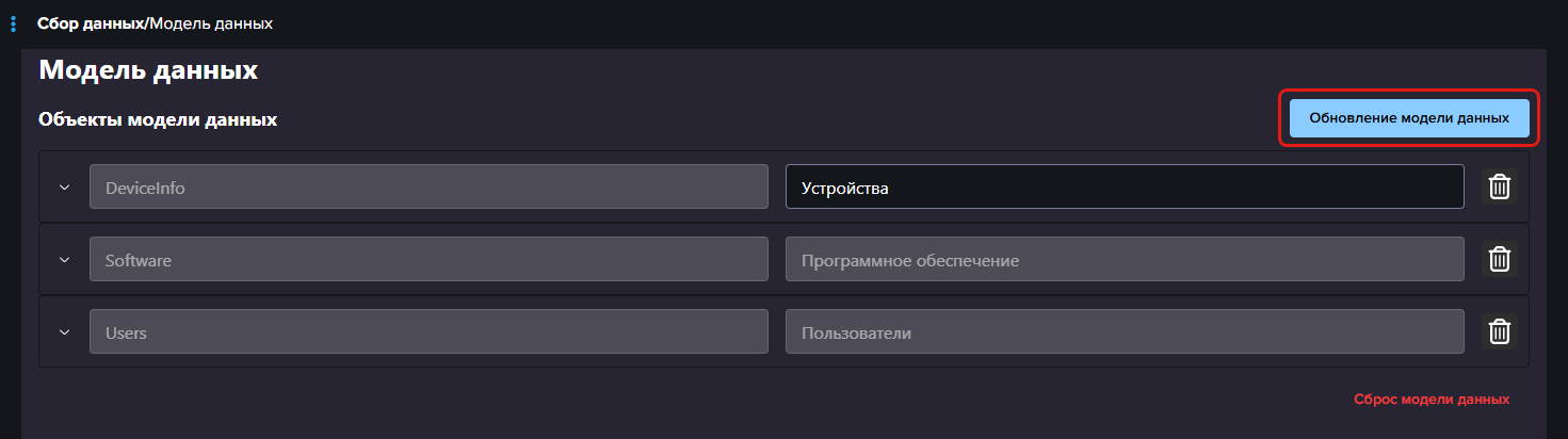 - Перейдите в раздел Сбор данных / Модель данных с помощью верхнего меню.