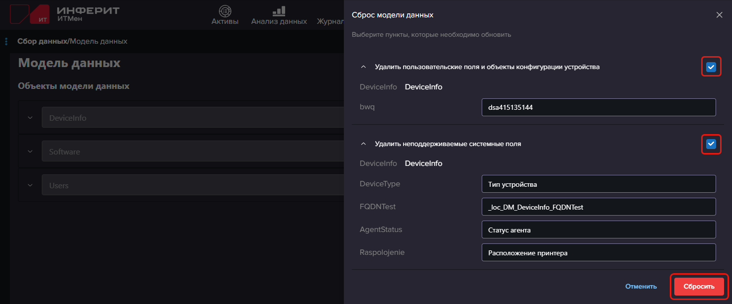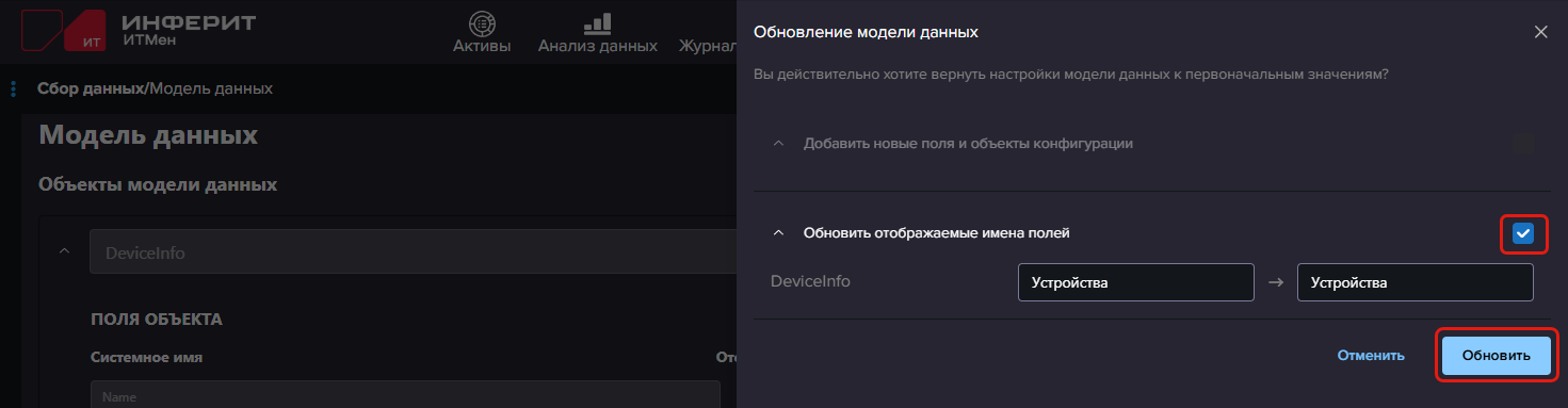 - Отобразится предпросмотр обновленной модели данных, с учетом выбраннх вами опций.