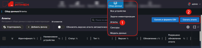 - Или скачайте через веб-интерфейс системы в разделе Сбор данных / Агенты.