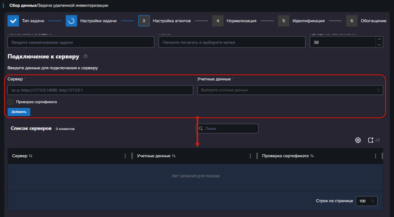 Важно! на этом шаге выберите сенсоры для каждого объекта инвентаризации, которые вы добавили на шаге настройки задачи. Отключите источники данных, которые вы не добавляли в объекты инвентаризации. - Идентификация