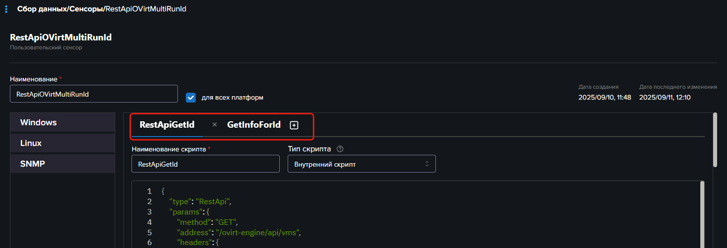 Использование сенсоров с несколькими скриптами поддерживается только задачами сбора данных инвентаризации с агента (локальный сбор) и сетевой инвентаризации.